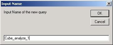 Choose menu item "Query\New" in the main menu of the program. In the opened dialogue choose an icon "Analyze OLAP Cube" (Pic.1). Enter the name of new query in the opened dialogue (Pic.2). Press the right button of the mouse on a working region of the program. In the opened menu choose item "Add External Cube" (Pic.3). Choose cube file which you want to analyse in the program (Pic.4). After a choice of a cube file You may see a new table in working area of the program. Choose mode EDIT and You can see structure chosen cube file (Pic.5).